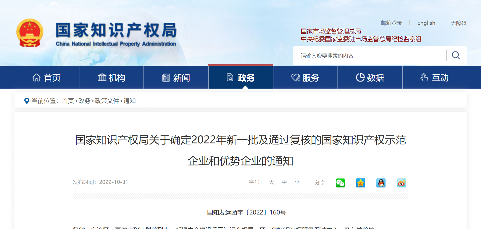 國家知識產(chǎn)權(quán)優(yōu)勢企業(yè),是國家對在知識產(chǎn)權(quán)創(chuàng)造、運用、保護(hù)、管理等方面表現(xiàn)突出的企業(yè)授予的最高榮譽(yù),也是國家給予企業(yè)知識產(chǎn)權(quán)管理工作的最高評價。